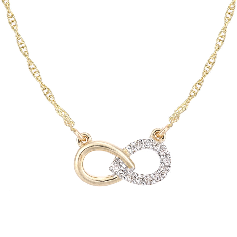 Diamond Pave Infinity Friendship Necklace In UK Hallmarked 9ct Yellow Gold