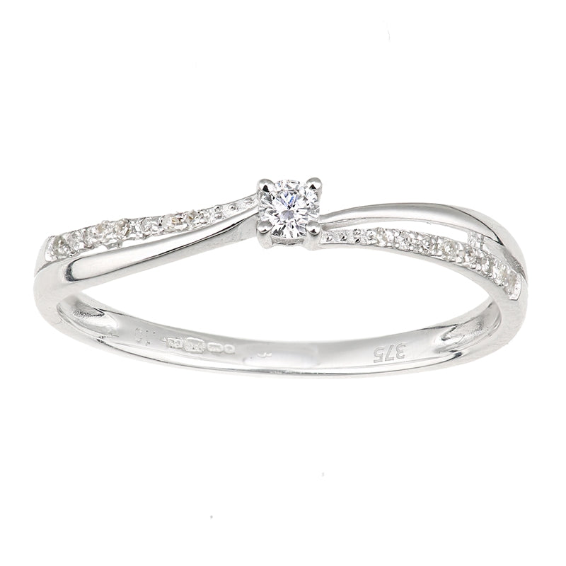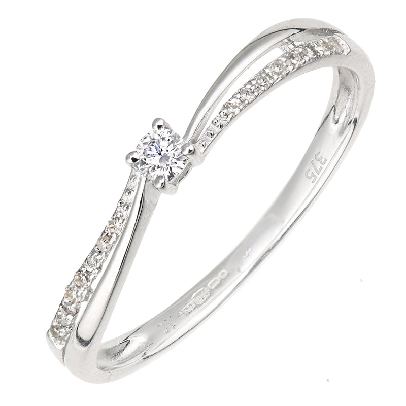 Round Diamond Prong Set Engagement Ring With Side Stones In UK Hallmarked 9ct White Gold
