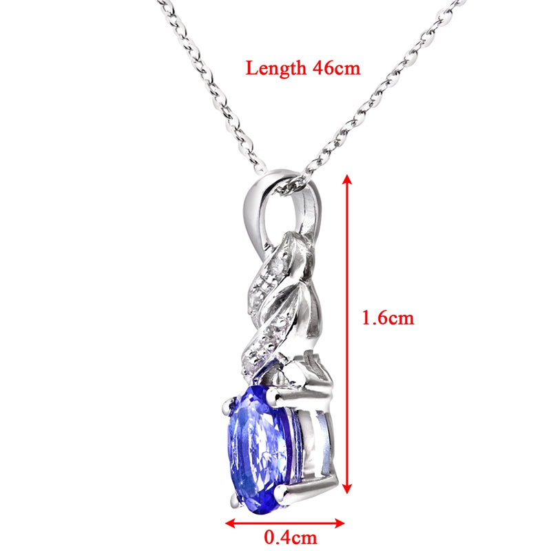 0.5ct Oval Tanzanite And Round Diamond Drop Pendant In UK Hallmarked 9ct White Gold