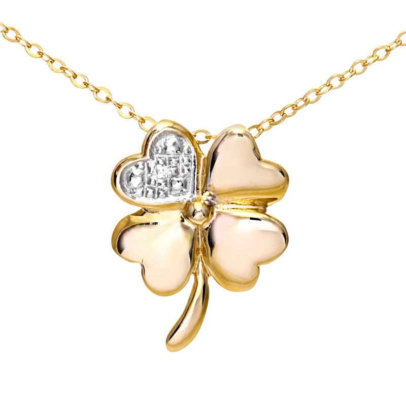 Diamond Pave Lucky Clover Pendant In UK Hallmarked 9ct Yellow Gold