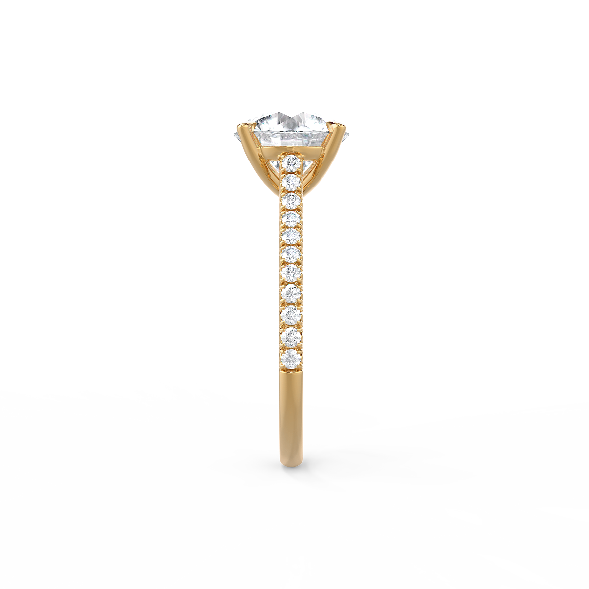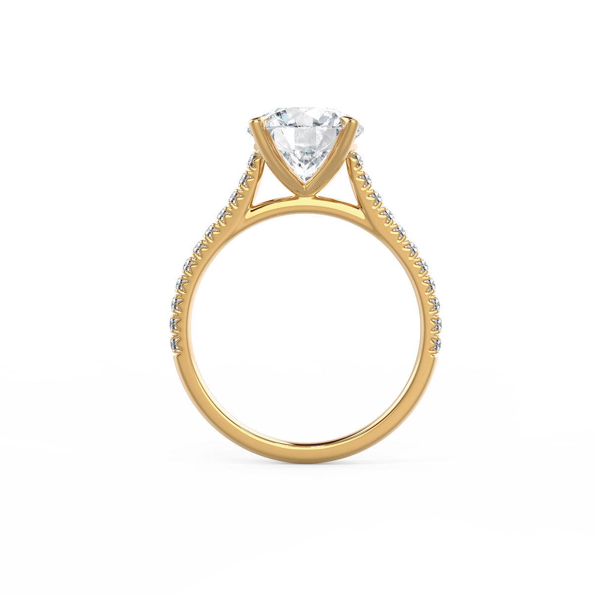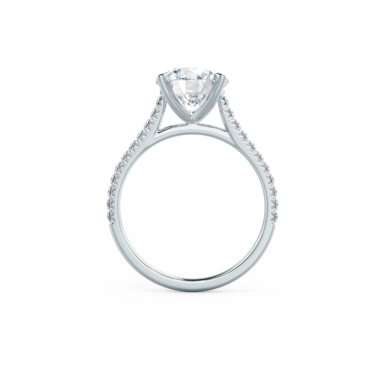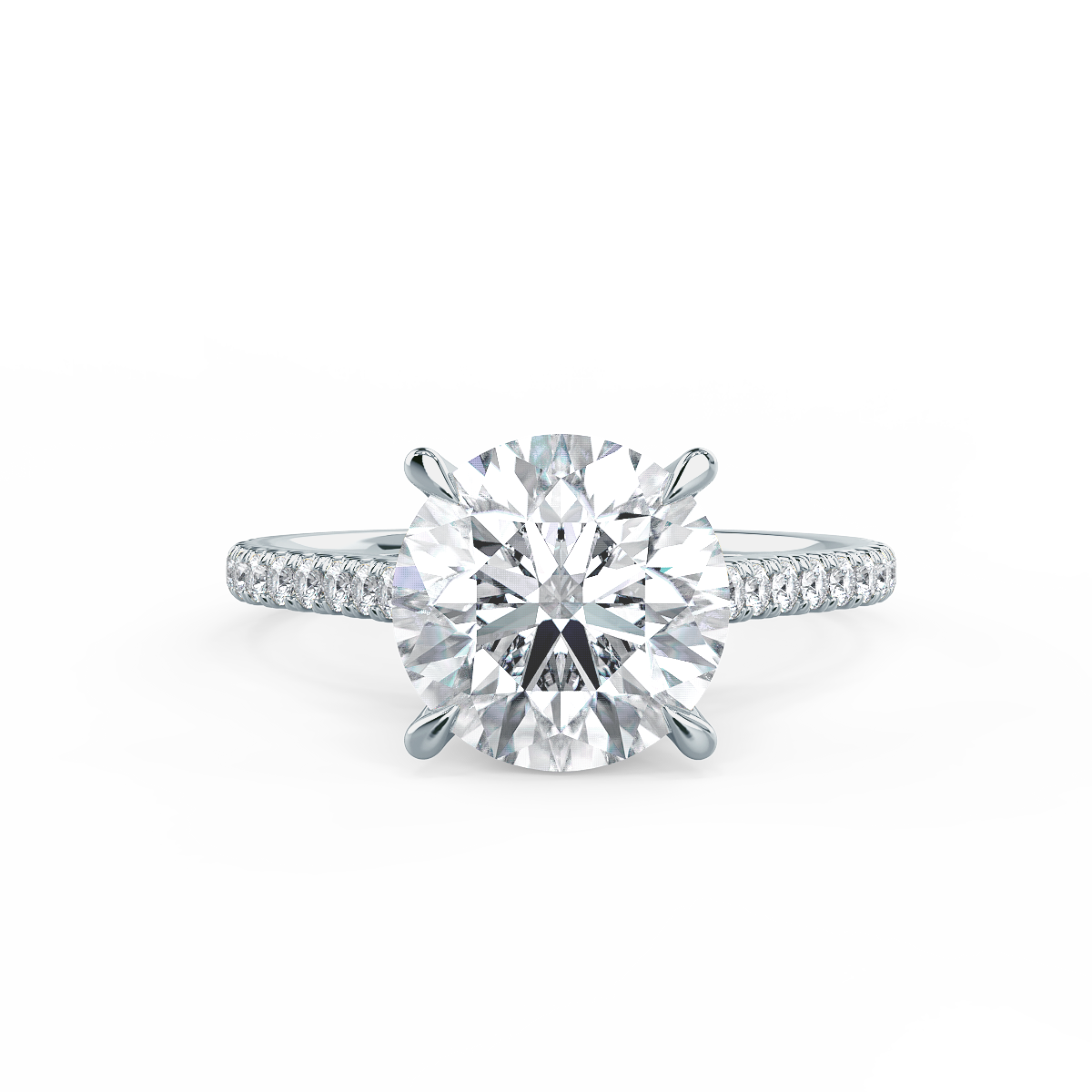 This truly magnificent round brilliant engagement ring features a delicate pavé-set diamond band. Each melee diamonds have been calibrated to perfection to give this design that sparkle you won't miss from across the room. If she desires that extra twinkle in her life then this is the one.