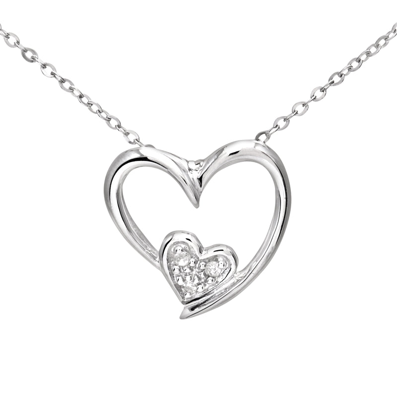 Heart Shape Diamond Pave Pendant In UK Hallmarked 9ct White Gold